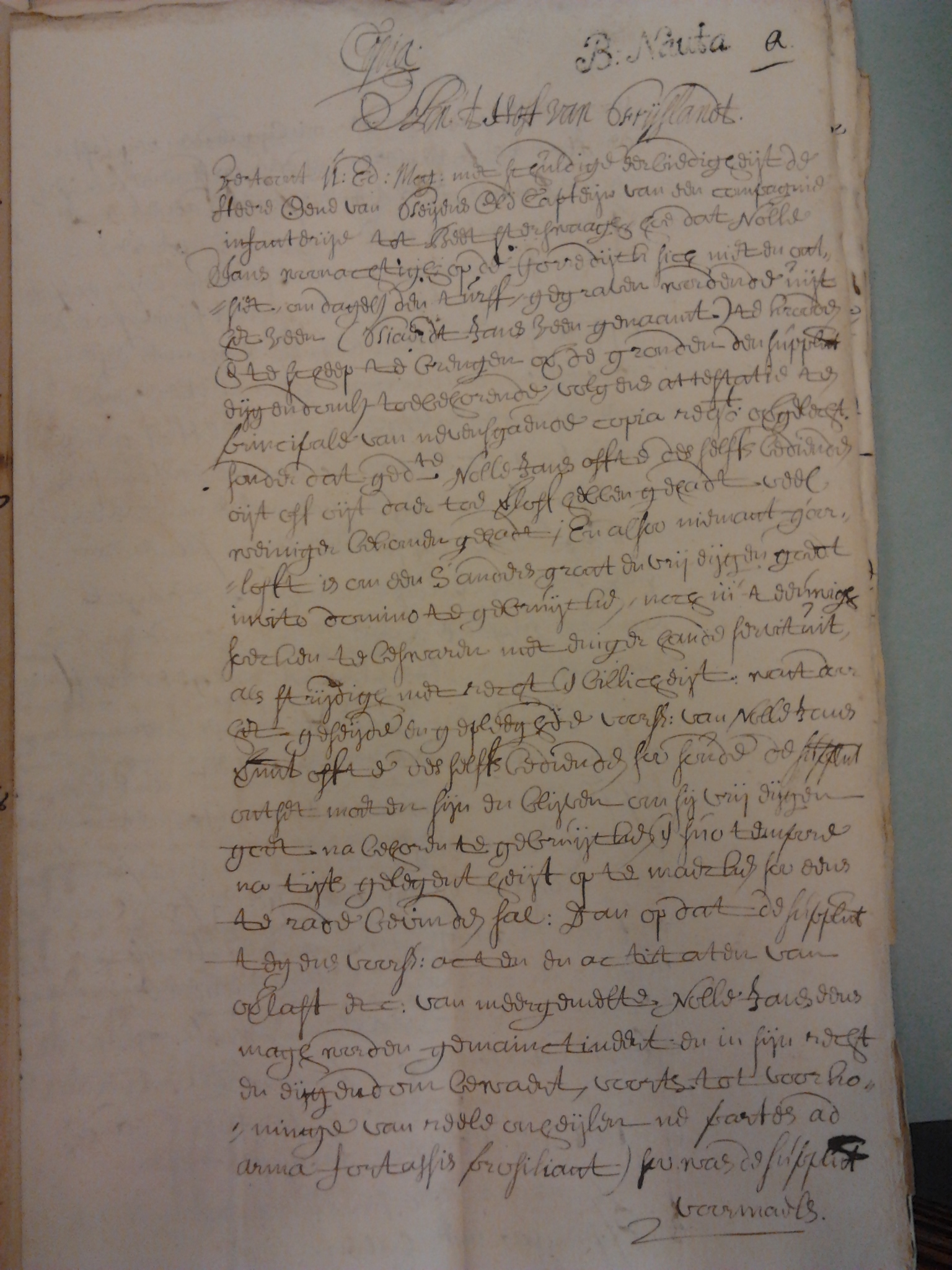 1701 etui van de aktepapieren van de zaak van Nolle Jans als gedaagde tegen Oene van Teijens uit de Civiele Sententieboeken van het Hof van Friesland,hieronder 3 pagina's