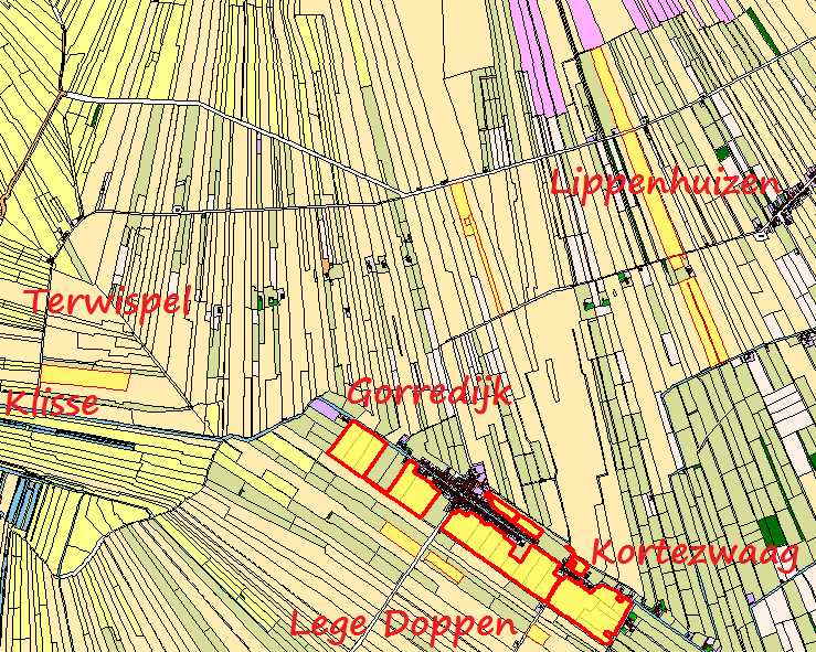 Hier het grondgebied van Nolle Jans in 1698 ,volgens het stemkohier van dat jaar , hij was zowel eigenaar als pachter (gebruiker,meijer,huurder) Het gebied rond Gorredijk huurde hij samen met 2 andere personen.De gele roodomgeven erven waren van Nolle Jans in 1698. Wie eigenaar van zo'n stemdragend erf was ,had letterlijk stemrecht in de politiek en kon een politieke functie op zich nemen. bron www.hisgis.nl